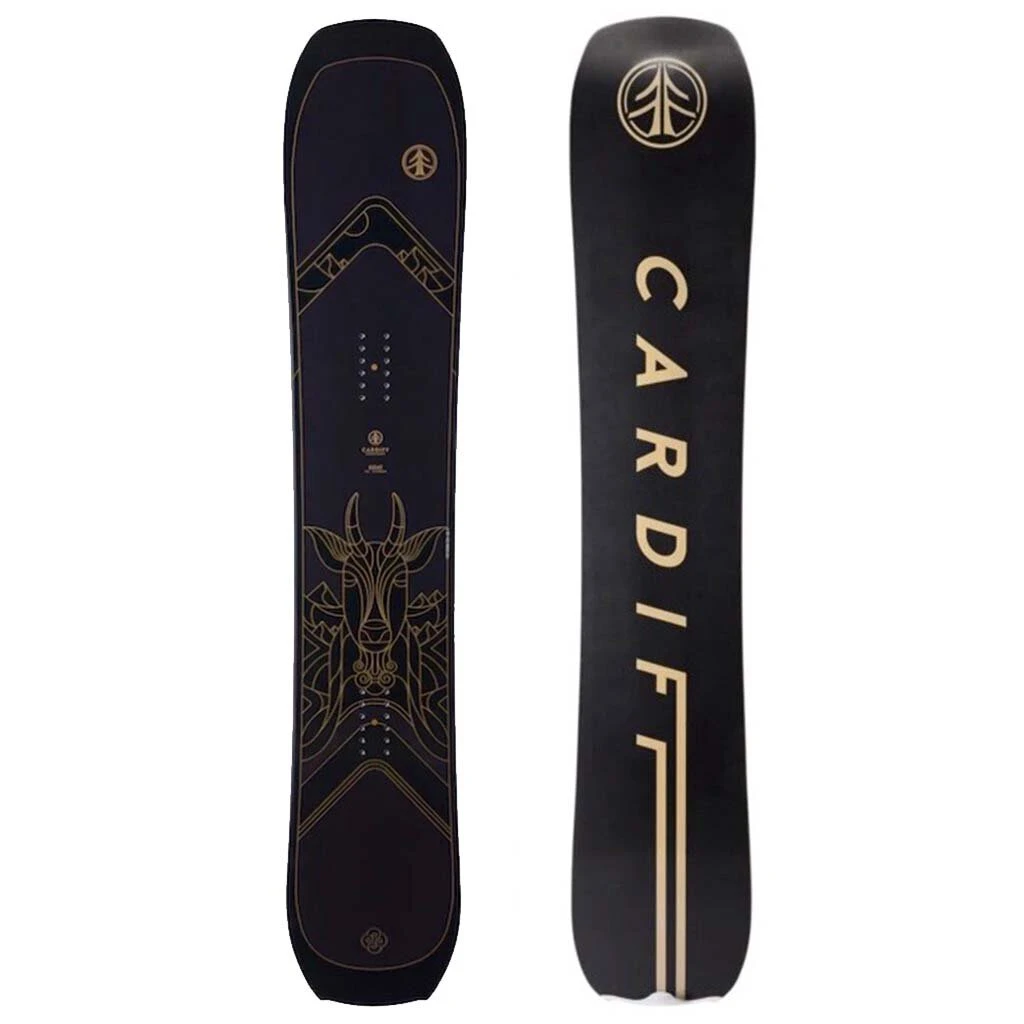 Built for hard-charging riders that are chasing new lines and new terrain, the Cardiff Goat Snowboard is ready for work. Cardiff’s HALFcamber profile places traditional camber between the contact points for power and precision, while rocker in the tip and tail increase float and eases turn initiation. A Pro Carbon build mixes poplar and paulownia woods in the core with vertically laid aluminum strips and carbon fiber to increase damping and response that’s needed for riding hard and pushing the limits. If you’re the type of rider to choose spicy lines, boost off natural features, or turn up the speed on the rest of the mountain, the Cardiff Goat Pro Carbon is sure to impress. NOTE: These boards are floor models, so there may be some light cosmetic scuffs on the topsheet, but they are brand new otherwise.