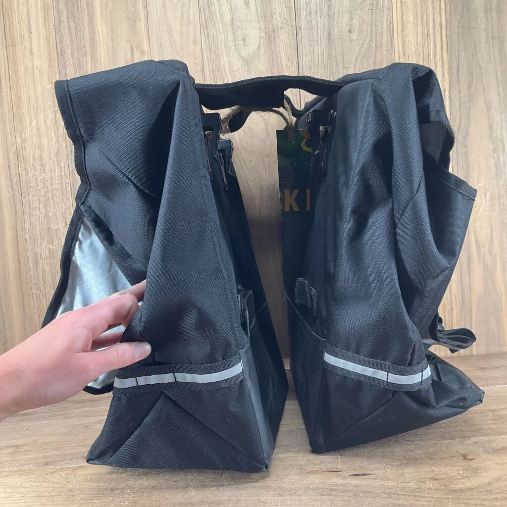 Used-Good Condition! Tired of carrying your groceries on your back? These panniers easily clip to a rear tire rack to make hauling a breeze.